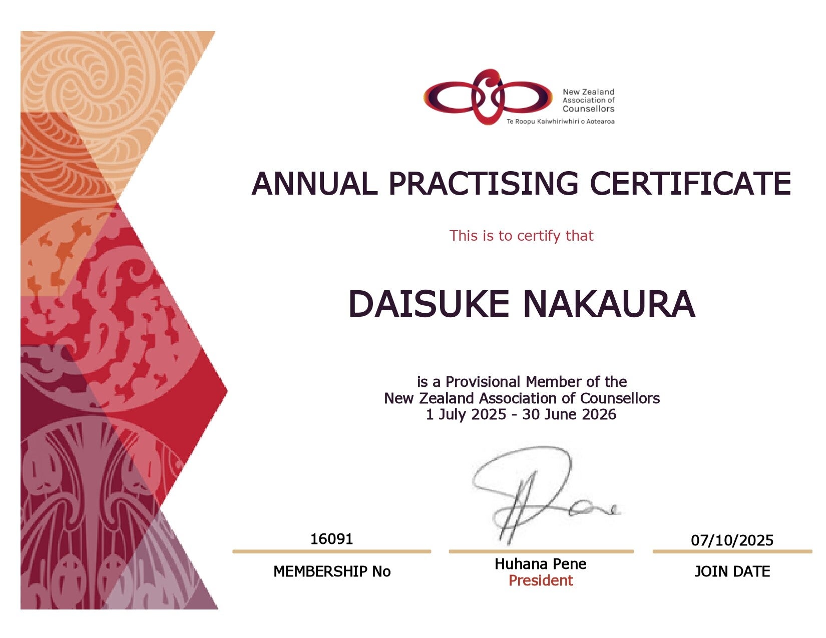 ニュージーランドカウンセラー協会員(NZAC)